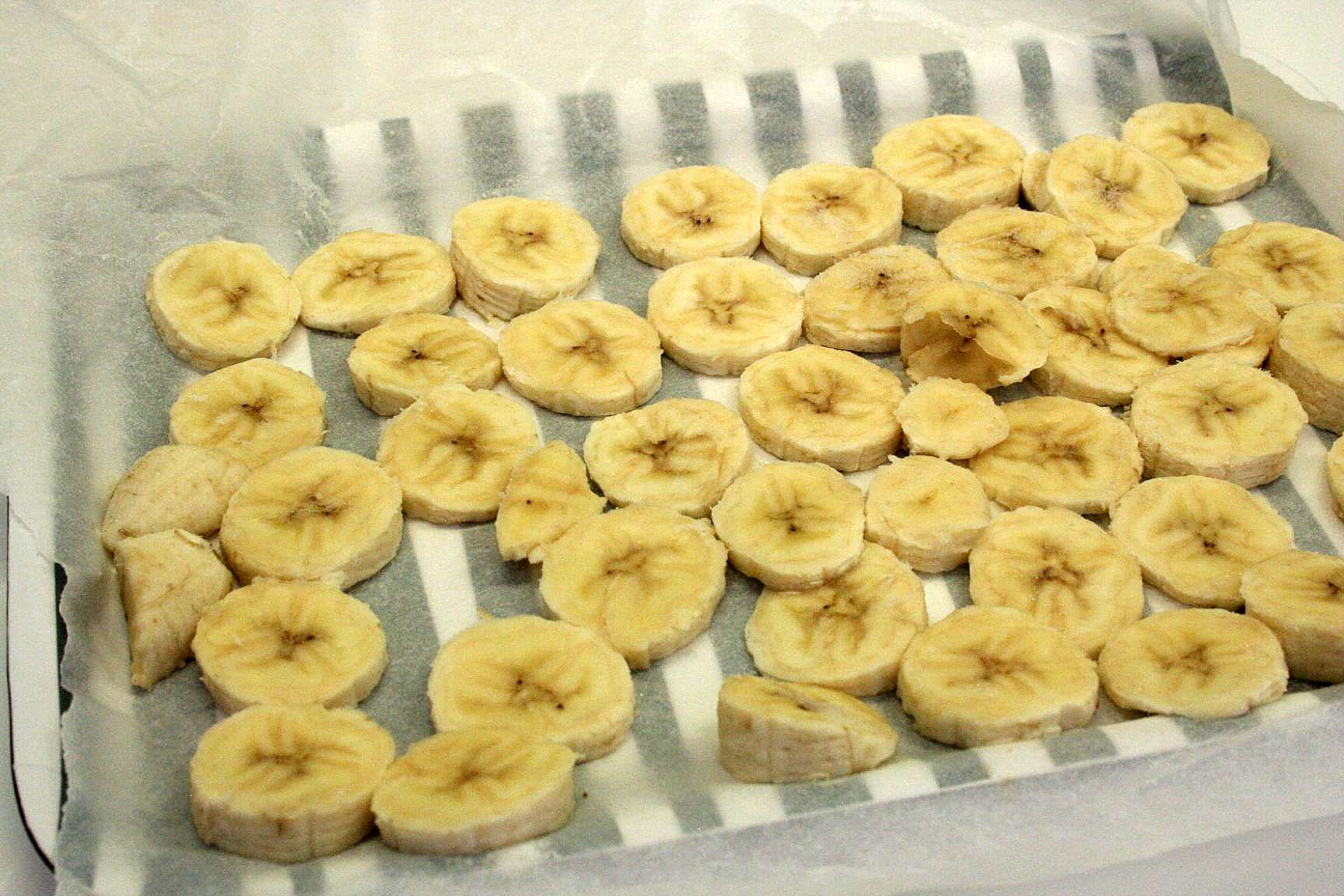 Peler et couper les bananes en tranches et les mettre dans une assiette au congélateur.